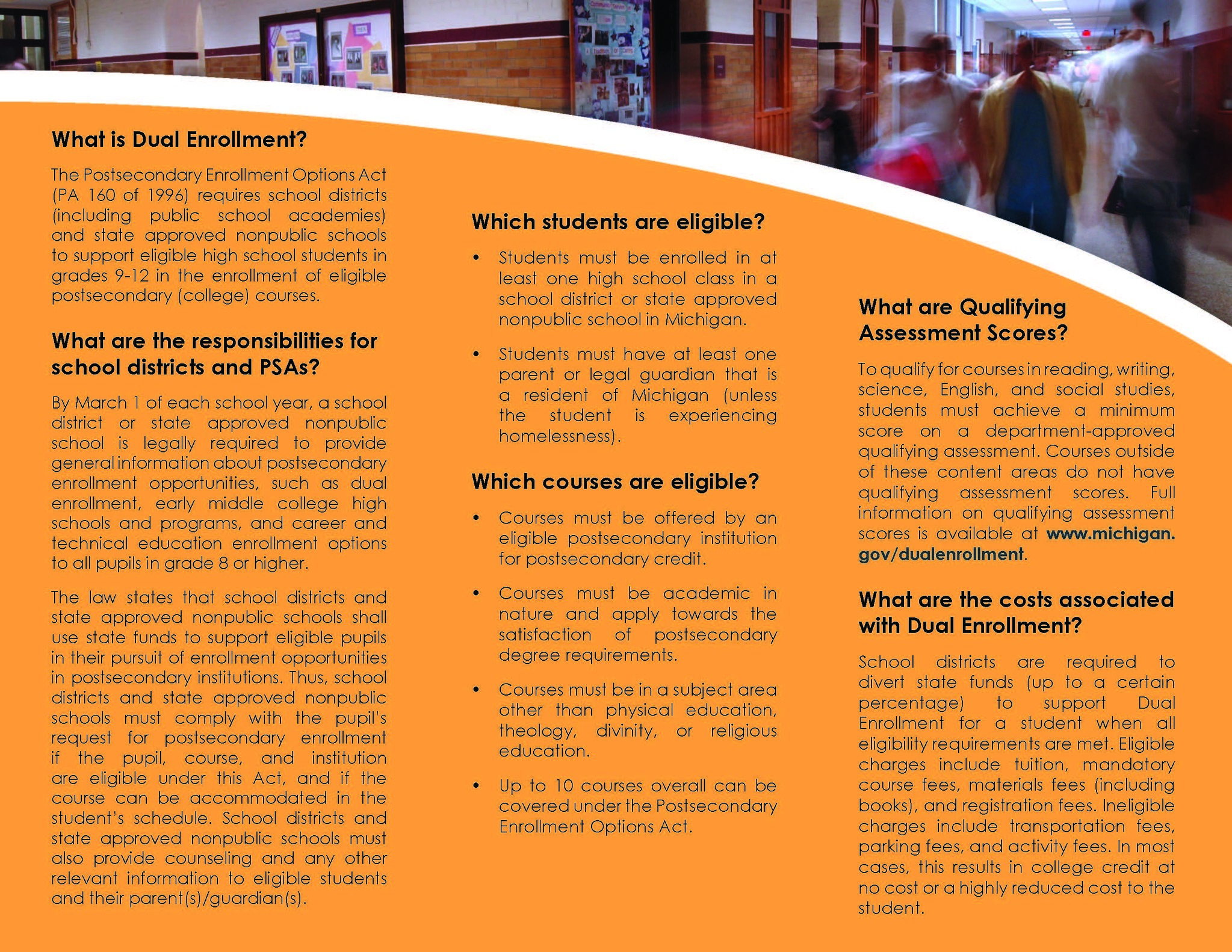 Dual enrollment information for 8th grade parents: Letter, Flyer 1, Flyer 2